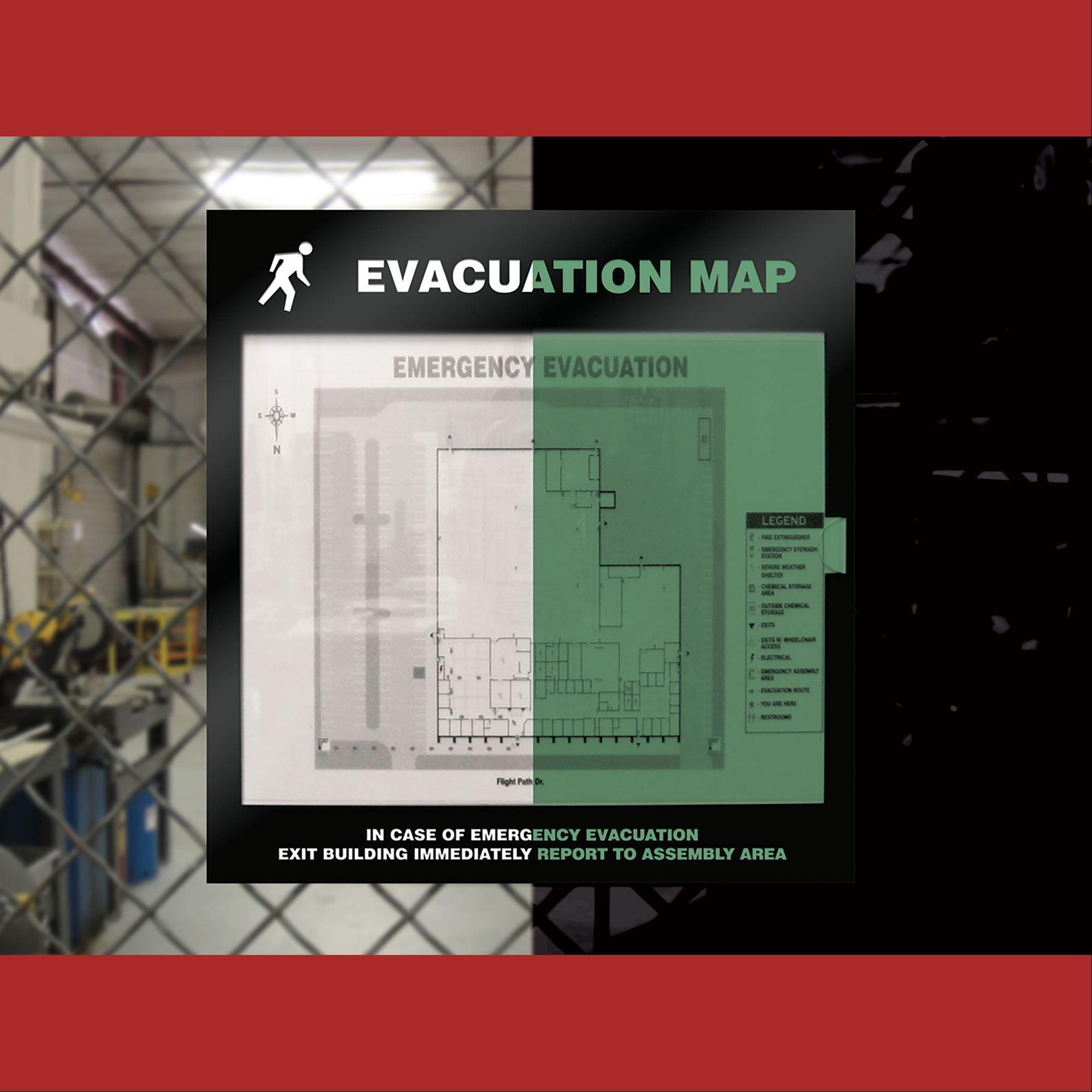 Evacuation Map Holders Holds 8.5" x 11" Insert • Glow ,1 Each
